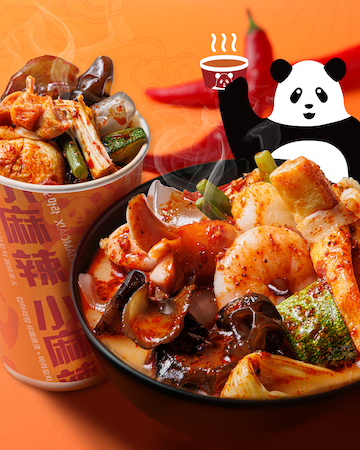 ブランドマスコット「シャオパンダ」をあしらったパッケージは、街歩きを彩るアイコンとして展開。特に「小麻辣」専用に設計された紙包装バッグは、麻辣オイルの漏れを防ぎつつ、中の温度を逃がさない高い実用性を備えている。