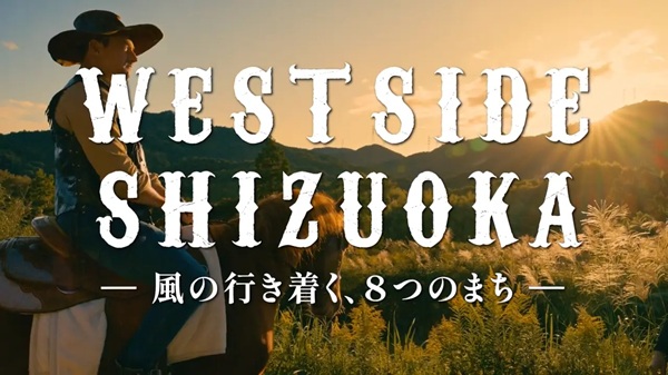 PR動画「WEST SIDE SHIZUOKA ~風の行き着く8つのまち~」は、「西部地域」と「西部劇」を掛け合わせたユニークな設定。