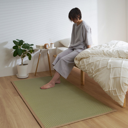 い草には、湿気が多い環境では水分を吸収し、乾燥した環境では保持している水分を放出するという調湿機能がある。そのため寝ござを敷くと、蒸し暑くて寝苦しい夜もさらりとした肌触りで、快適な寝心地になる。天然の抗菌・防臭機能があるので、たくさん汗をかく子どもたちのお昼寝にもおすすめだ。