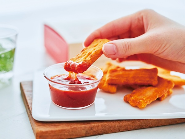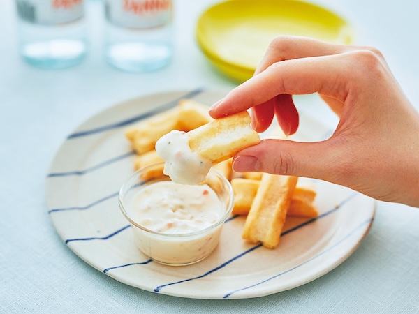 「ディップするおかき」は濃厚なソースにおかきをつけて楽しむ商品。