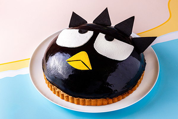 スイーツの目玉は、バッドばつ丸へ贈るサプライズケーキをイメージした「バッドばつ丸へのサプライズ」。バッドばつ丸のクールな表情をモチーフにしたチョコレートとチェリーの贅沢なタルトである。
