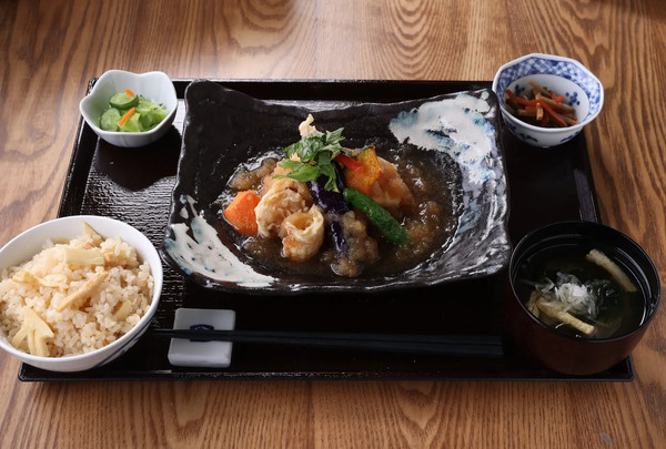「季節の炊き込み」は、季節ごとに炊き込みごはんの内容が変わり、その時々の旬の食材を使ったごはんを味わうことができる。
