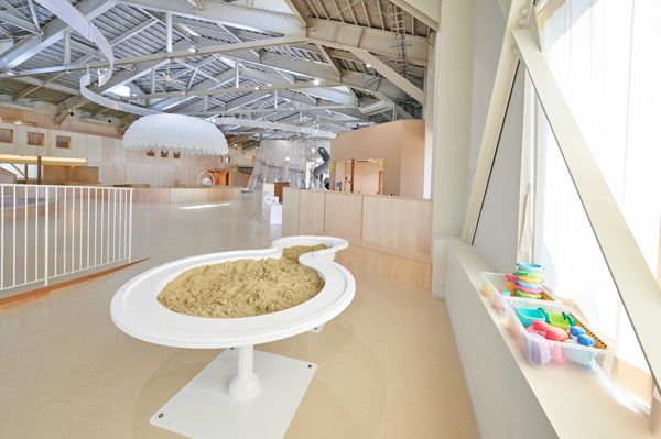 このほか、車いすの人も遊べるように設計された室内で楽しめる砂場や、