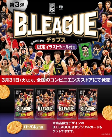 栃⽊県栃⽊市に本社を置くひざつき製菓は、ジャパン・プロフェッショナル・バスケットボールリーグとのコラボレーションによる「B.LEAGUEチップス 25-26」を、3⽉31日(火)より全国のコンビニエンスストアにて販売する。