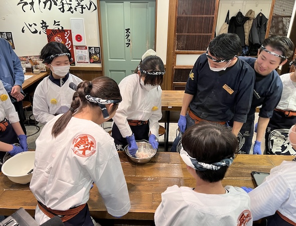こども屋台選手権後、調布総本店ではたんぽぽキッチンのメンバーから調布総本店のスタッフへ向けたチュロスのレクチャー会が行われた。