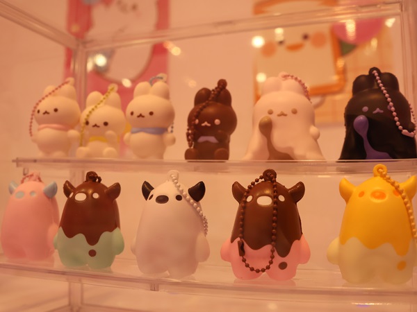 また、“推し活”ブームの広がりに合わせて、バッグに付けられるチャーム付きスクイーズも大人気。メロンパンのスクイーズにはメロンの香り、ピーチのスクイーズにはピーチの香りといったように、それぞれのアイテムに甘くて心地よい香りがついており、見た目だけでなく香りでも楽しめるのが魅力だ。