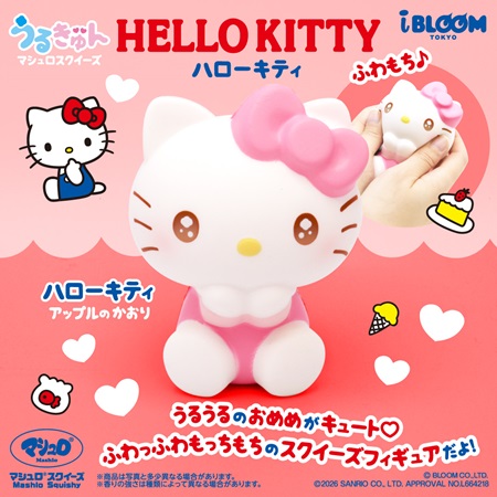 「うるきゅん ハローキティ」1,628円(税込)は、ぷるんとした質感と可愛らしいデザインで、見ても触っても癒されるアイテム。サンリオの人気シリーズ「うるきゅんマシュロスクイーズ」に、ついにハローキティが仲間入りした。