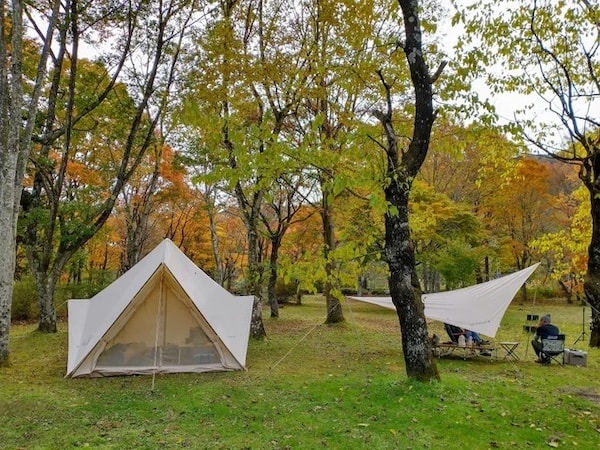 アクセスのよい場所でありながら静かに過ごせる好立地にある。山芽吹く新緑の季節~紅葉の季節、冬の雪中キャンプまで四季を楽しめるキャンプ場だ。