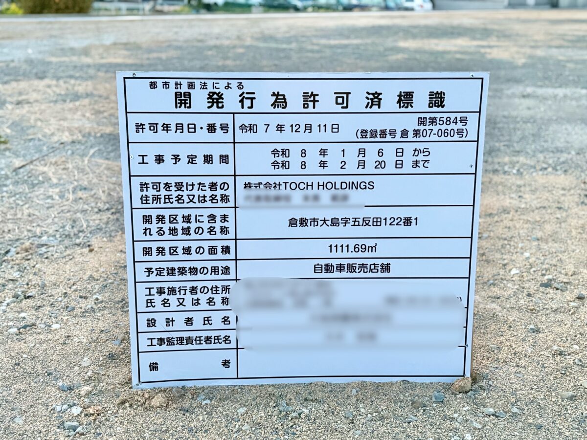 標識を見てみると、予定建築物の用途のところに自動車販売店舗とあります。
