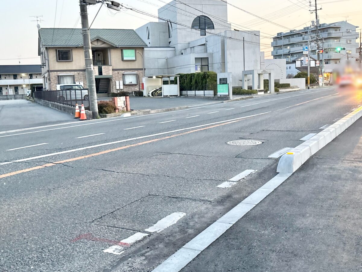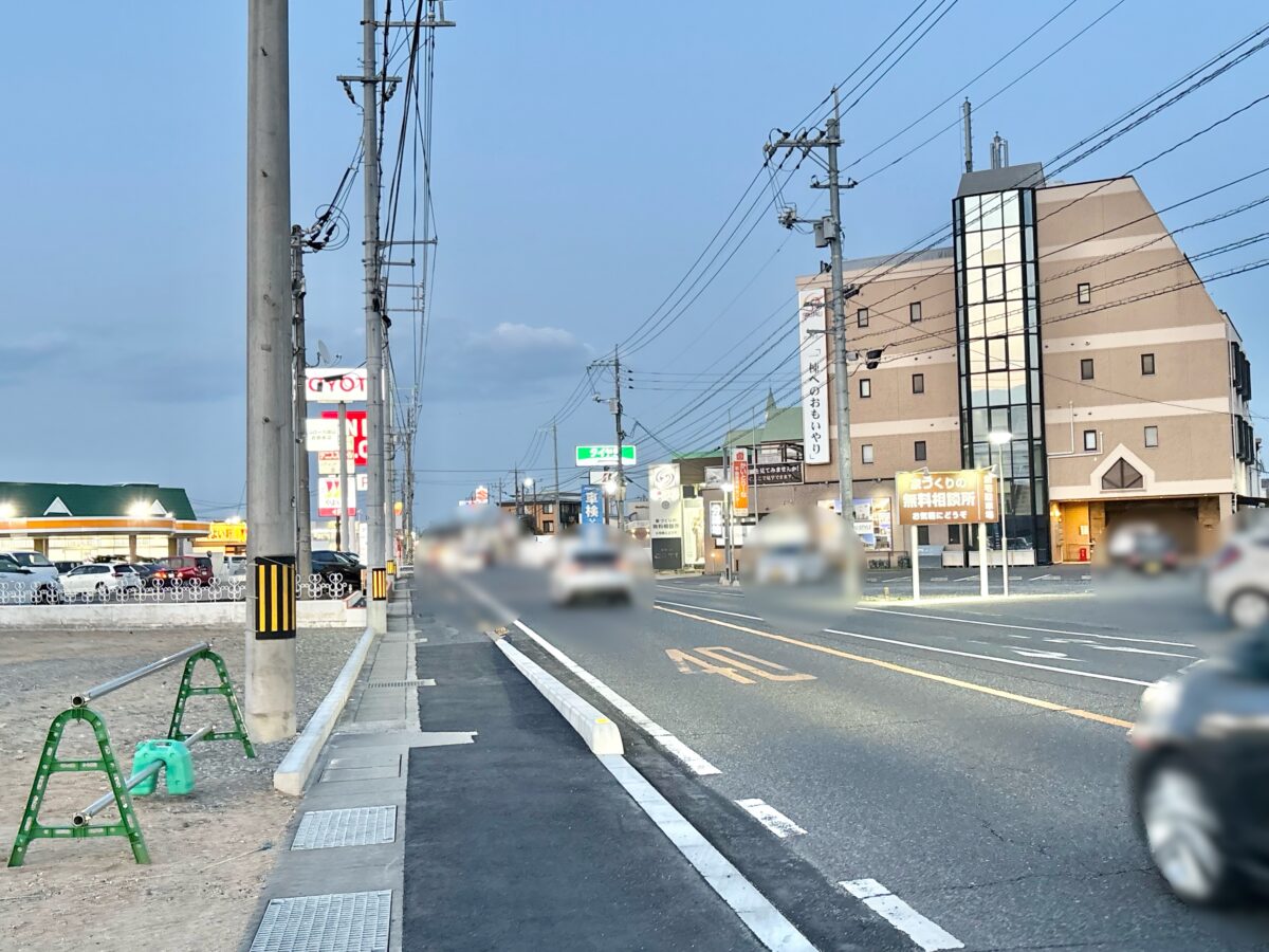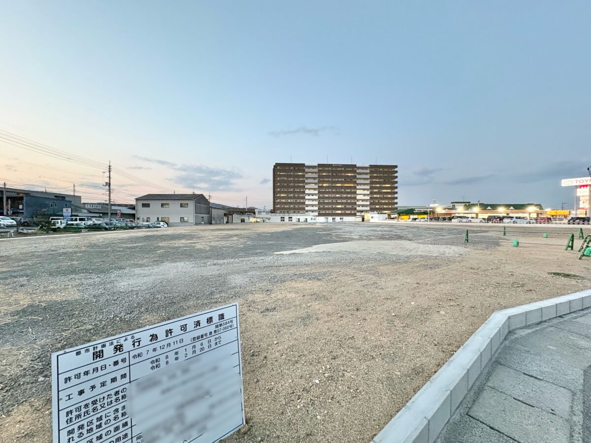 現地の様子で改めて見てみると広い敷地なんで自動車がたくさん並ぶ販売店舗ができるとこの道沿いの景色も変わりそう。