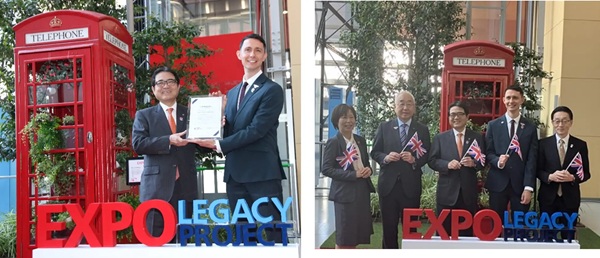 セレモニーで、マイケル・ブライス氏は、「電話ボックスも空港も世界中の人と人をつなぐ役割は同じ。この電話ボックスを見た多くの方が万博や英国のことを思い起こしてくれたらうれしい」とコメント。関西エアポート代表取締役CEOの山谷佳之氏は、「この電話ボックスは、長い間大切にされてきた英国のアイコン。人工島で自然との共生に向き合ってきた関西国際空港と親和性を感じる。この素晴らしい電話ボックスと、万博の理念をともに大切にしていきたい」と話した。