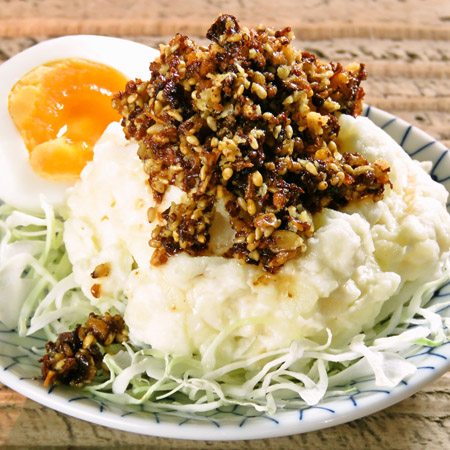 「酒場ハコザキ」独自の「野田醤油のポテサラ」495円、