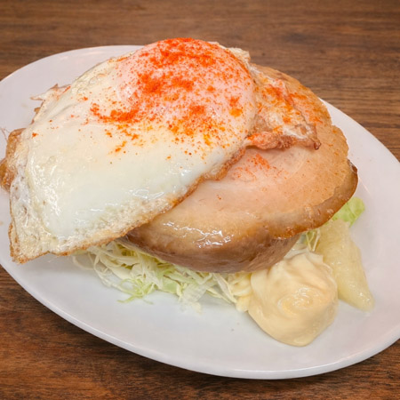 ボリュームがあり箸で崩れる柔らかさの「チャーシューエッグ」990円、