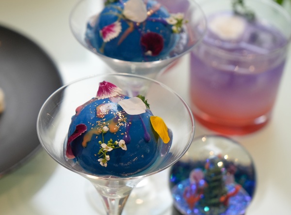 なかでも、アトアの展示を華やかに表現した『PLANETS-奇跡の惑星-』のシンボリックな球体水槽から着想を得たブルーのムースケーキと、