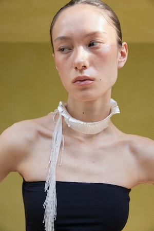 展開されるコレクションは、ミニマルでありながら構造的なフォルムが印象的で、モダンなスタイルに自然と溶け込む設計。複数のアクセサリーをレイヤードすることで完成するスタイリング提案もブランドの特徴となっており、日常の装いにさりげない個性と奥行きを与える。
