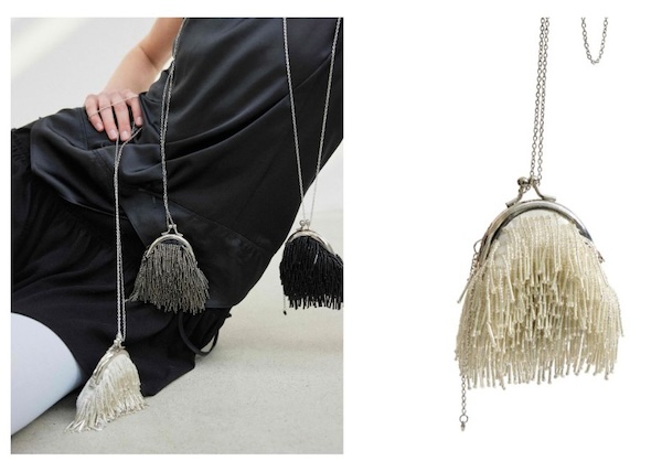 「PRISM KEY-RING BAG」14,300円(税込)は、イタリア製ビーズフリンジをハンドメイドで編み込んだ超ミニバッグ。AirPodsやリップスティックなどの小物を収納可能だ。チェーンを繋げてクロスバッグとしても活用できる。
