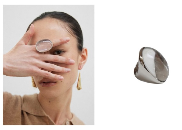 また、独自の技術で製作されたクリスタルレジンによる「OVAL CLEAR DANCE R」30,294円(税込)は、大胆なサイズ感ながら繊細な印象を与えるリングとなっている。
