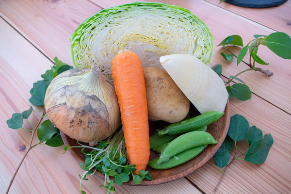 あさりは、ビタミンBが豊富で肝機能をサポート。人参にはBカロテンが多く含まれており、同メニューではすりおろしのため栄養吸収率もUPする。じゃがいもは、エネルギー源となる炭水化物が豊富な食材である。そして青のりは、カルシウムや鉄の含有量が海藻類の中でもトップクラスだという。
