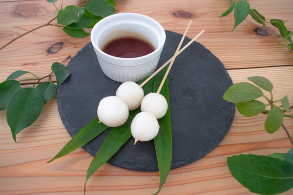 「手作りみたらし団子」は、米粉を使用し、米の香りを存分に引き立てた手作り団子。鉄板の炭火で焼いてアウトドア体験するも良し、そのまま食べても良し。自家製みたらしのタレ付きだ。
