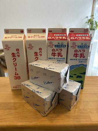 大山乳業の牛乳、生クリーム、バター、アイスを使用