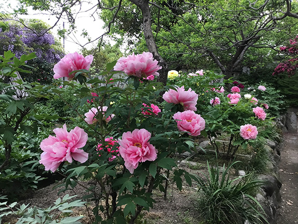 「麒麟司」など、品種豊富な牡丹を間近で観賞できる。