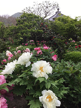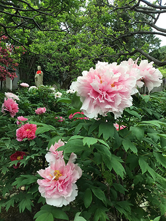 戦後の荒廃から40年の歳月をかけて復興を遂げた「牡丹寺」として知られ、色とりどりの大輪の花が境内を彩る。