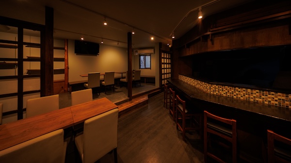 「ゆっくりと料理や会話を楽しみたい」という利用者のニーズに応えるため、賑やかな1階とは導線を分けた「隠れ家」がコンセプトに設計。店内には、調理のライブ感が伝わるカウンター席と、グループ利用が可能なテーブル席を設けている。