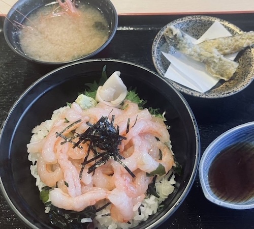 「うみてらす名立」2階海鮮レストラン 海のだいどこやでは「甘エビ丼」、