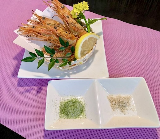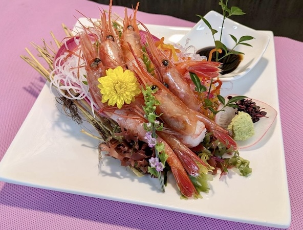 「くわどり湯ったり村」森のキッチン湯ったり庵では「甘エビ刺身」、