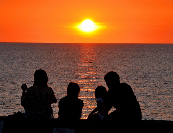 日本海を一望できるロケーションからは、夕日が空と海を茜色に染める幻想的な景色を楽しめる。
