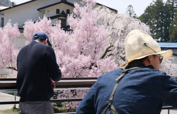 この時期は、ゲレンデで春スキーを楽しみながら、シーズン終了のカウントダウンが始まるころで、桜の開花と共に春の訪れを目の当たりにできる特別な体験ができるのが魅力。桜の木は野沢温泉ロッヂの目の前に位置しているため、テラスはもちろんフリースペースからも一望できる。