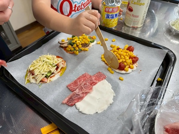 2回目は2025年4月4日に開催した「食物アレルギー」食育×啓発イベントの「親子で世界に1つのピザを作ろう!~注目の米粉で小麦アレルギーでも楽しめる料理教室~」。本格的な米粉ピザを鳥取和牛などを使って作った。