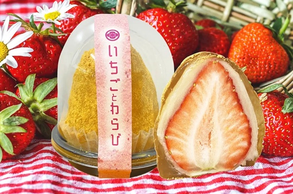 工藤菓子店の、とろける食感の季節限定わらび餅「いちごとわらび」や、