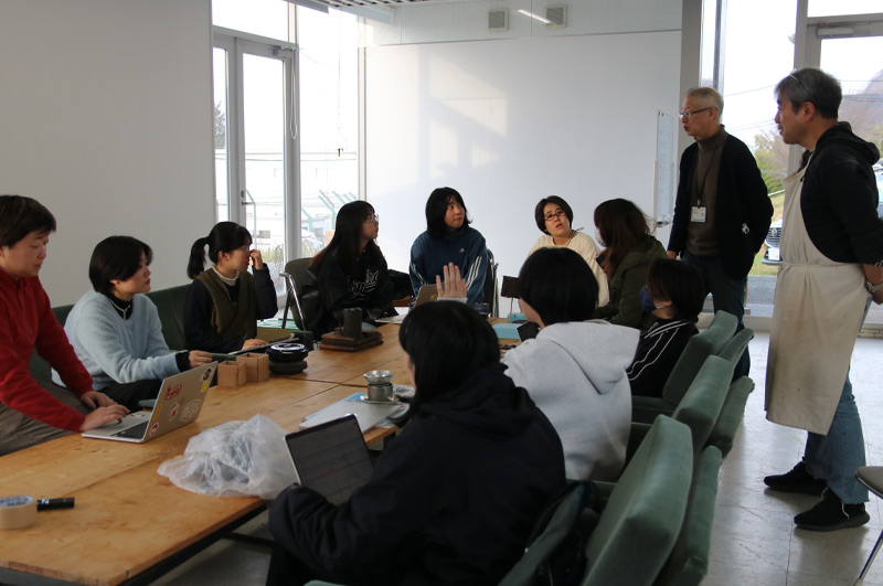 先日、私たちも講義室へお邪魔して学生さんと先生方とデザイン案についてディスカッションしたところ、