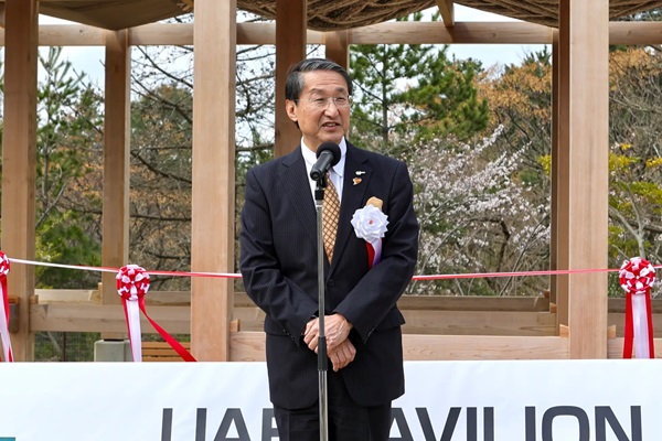 続いて、航空機欠航のため残念ながら欠席となった駐日アラブ首長国連邦大使館 特命全権大使 シハブ・アハマド・アル・ファヒーム閣下のメッセージが代読された。「このパーゴラは鳥取県とUAEの友好の証であり、今後両地域の友好関係が発展していくことを心より祈念しております。」