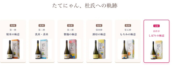 公式オンラインショップでは、第1弾〜第6弾が揃った「限定復刻 コンプリートセット」を販売。第3弾と第5弾はすでに完売しているため、今回新しい酒が用意された。