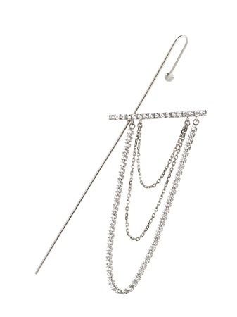 スティック下部はピアス、上部はフック仕様で、左耳専用デザイン。素材は、こちらもシルバー925だ。