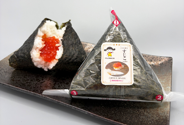 同提供品は、お弁当や惣菜の製造を行う丸髙 髙橋蒲鉾店および、あおもり桜マラソン実行委員会とオカムラ食品工業が共同制作したもの。具材には、オカムラ食品工業自慢の筋子「活き造り一夜漬け」と青森県産米100%を使用し、青森ならではの味わいを楽しめる。