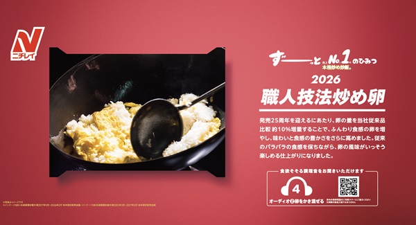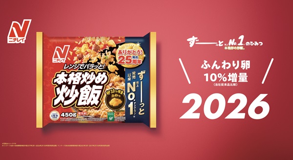 ニチレイ「本格炒め炒飯」は、「25年連続売上No.1(※1)」および「2025年の冷凍食品全体における購買金額No.1(※2)」を達成した。