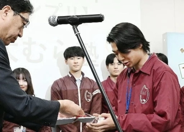 表彰式では、代表の上野元輝さんが「農村で過ごして農業の魅力を実感しました。農村との交流活動を通して、農業に関わる若者が増えてほしいです」とコメントした。