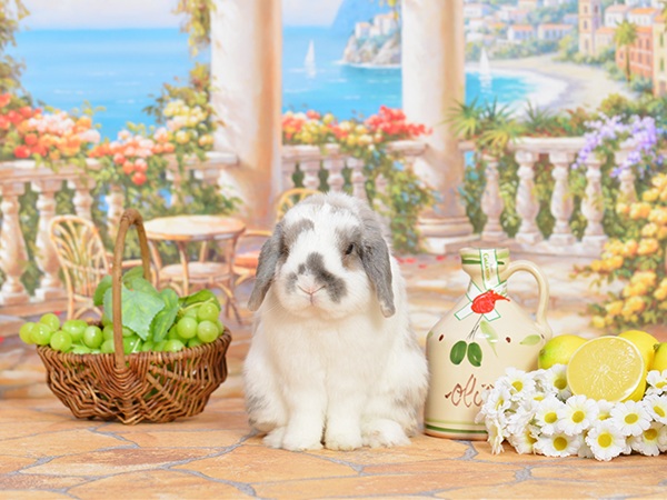 「うさぎの撮影会」は、2008年から続く人気サービスで、テーマに合わせた背景セットを用意して、愛兎の写真を撮影している。