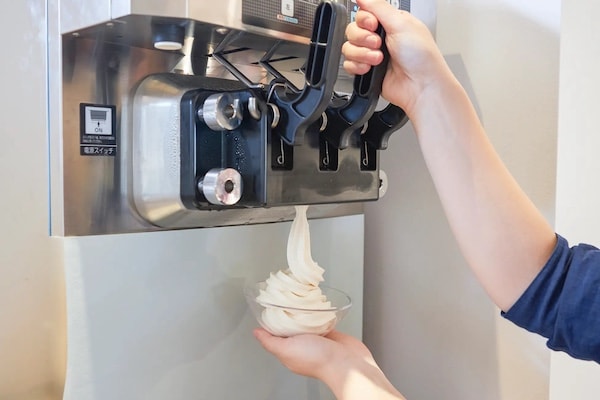 ソフトクリームはセルフサービス形式とし、自分の好きな分だけ食べられる。滞在中に気軽に楽しめる“ちょっとした褒美”として導入した。
