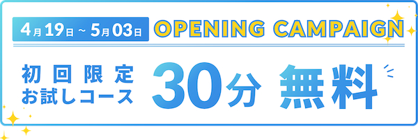 30分無料のオープン記念キャンペーン