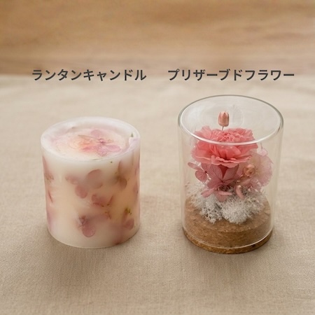 さらに、花のプロが手がける癒しのアイテムとして、2つの選択肢が用意されている。やわらかな灯りとほんのり広がる香りが特徴の「ランタンキャンドル」、または長く楽しめる特別な贈り物である「プリザーブドフラワー」のいずれかを選択可能だ。