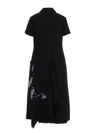 「半袖ドレス」165,000円(税込)が登場。ローラーで描かれたようなプリント柄が特徴のシリーズで、それぞれのアイテムが、角度によって豊かな表情の変化を見せる。