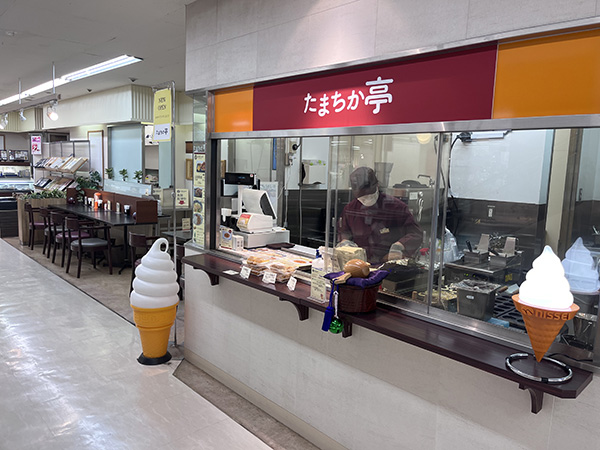 店頭では「玉屋まんじゅう」の復刻販売をはじめ、気軽に楽しめる軽食メニューを用意。買物の合間に立ち寄れる利便性の高い空間になっている。