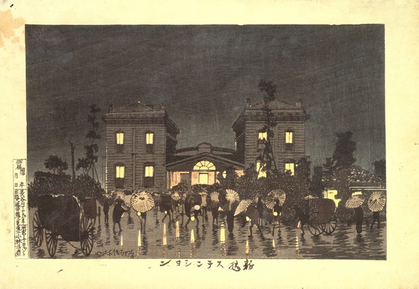 「新橋ステンシヨン」 ⼩林清親/画 1881年(明治14) 東京都江戸東京博物館蔵【前期:6月23日(火)-7月26日(日)】
