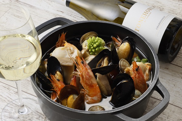 また、ディナー限定でギリシャの定番野菜料理「ムサカ」や「本マグロのマリネ ポワローレモンドレッシング」などを用意するほか、シェフサービスでハモンセラーノ原木のカッティングサービスを実施するという。