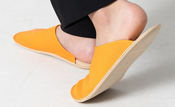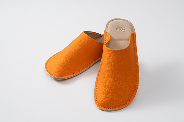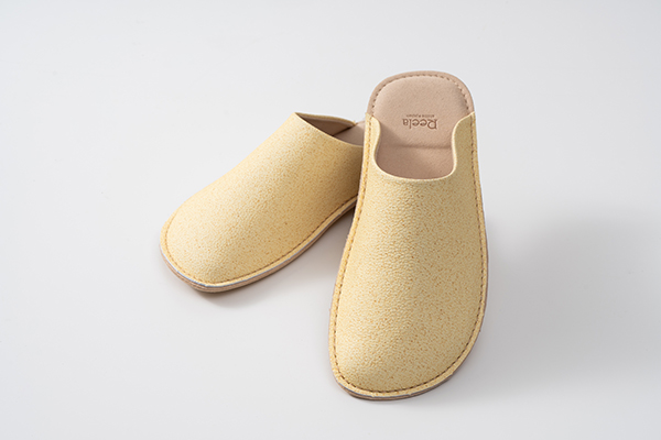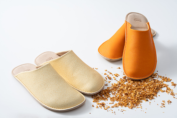 モノツク工業は、愛媛県産伊予柑の搾汁残渣をアップサイクルした新素材「いよかん人工皮革」を開発。愛媛県松山市の老舗サンダルメーカー・ヤマトと室内履き「いよかんルームサボ」を共同開発した。