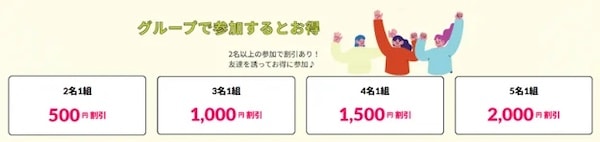 「MEGA LOVE FES」は、グループ割引チケットを用意しており、複数人グループで参加するとチケット代が割引になる。内容は2人1組で500円引き、3人1組で1,000円引き、4人1組で1,500円引き、5人1組で2,000円引き。